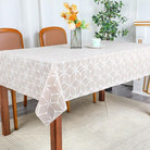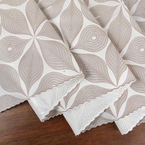 Скатерть декоративная в рулоне шириной 137 см длиной 20 метров. Толщина варьируется от 0,4 до 0,6 мм, плотность материала около 390 г ± 15 гр, в зависимости от рисунка. Полупрозрачная структура и ажурная отделка придает легкость в оформлении интерьера.