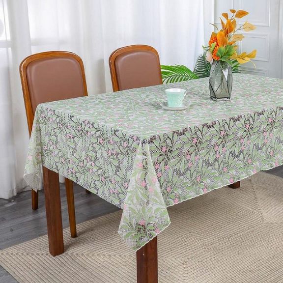 Скатерть декоративная в рулоне шириной 137 см длиной 20 метров. Толщина варьируется от 0,4 до 0,6 мм, плотность материала около 390 г ± 15 гр, в зависимости от рисунка. Полупрозрачная структура и ажурная отделка придает легкость в оформлении интерьера.