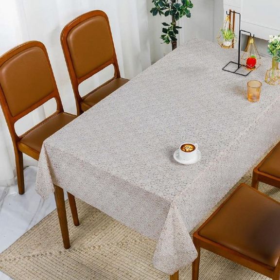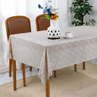 Скатерть декоративная в рулоне шириной 137 см длиной 20 метров. Толщина варьируется от 0,4 до 0,6 мм, плотность материала около 390 г ± 15 гр, в зависимости от рисунка. Полупрозрачная структура и ажурная отделка придает легкость в оформлении интерьера.