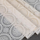 Скатерть декоративная в рулоне шириной 137 см длиной 20 метров. Толщина варьируется от 0,4 до 0,6 мм, плотность материала около 390 г ± 15 гр, в зависимости от рисунка. Полупрозрачная структура и ажурная отделка придает легкость в оформлении интерьера.