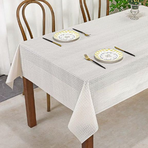 Скатерть декоративная в рулоне шириной 137 см длиной 20 метров. Толщина варьируется от 0,4 до 0,6 мм, плотность материала около 390 г ± 15 гр, в зависимости от рисунка. Полупрозрачная структура и ажурная отделка придает легкость в оформлении интерьера.