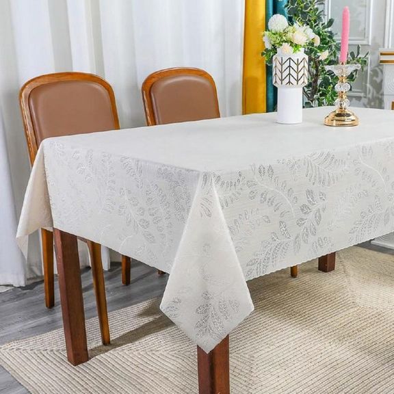 Скатерть декоративная в рулоне шириной 137 см длиной 20 метров. Толщина варьируется от 0,4 до 0,6 мм, плотность материала около 390 г ± 15 гр, в зависимости от рисунка. Полупрозрачная структура и ажурная отделка придает легкость в оформлении интерьера.